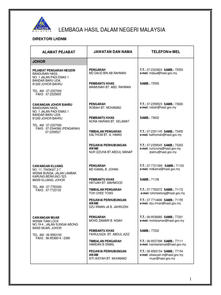 Cawangan LHDN Negeri-Negeri Malaysia PDF