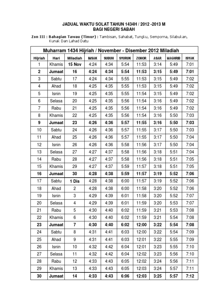 Jadual Waktu Solat 1434 Zon 3 PDF